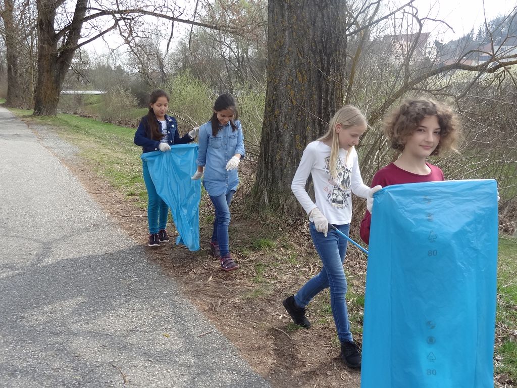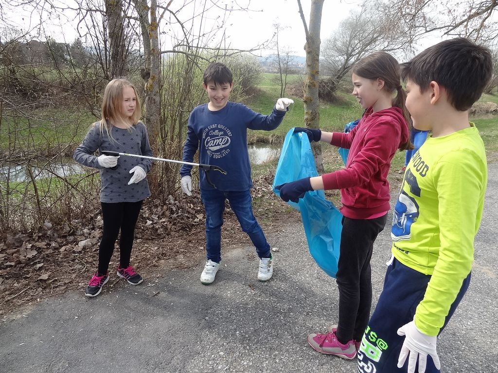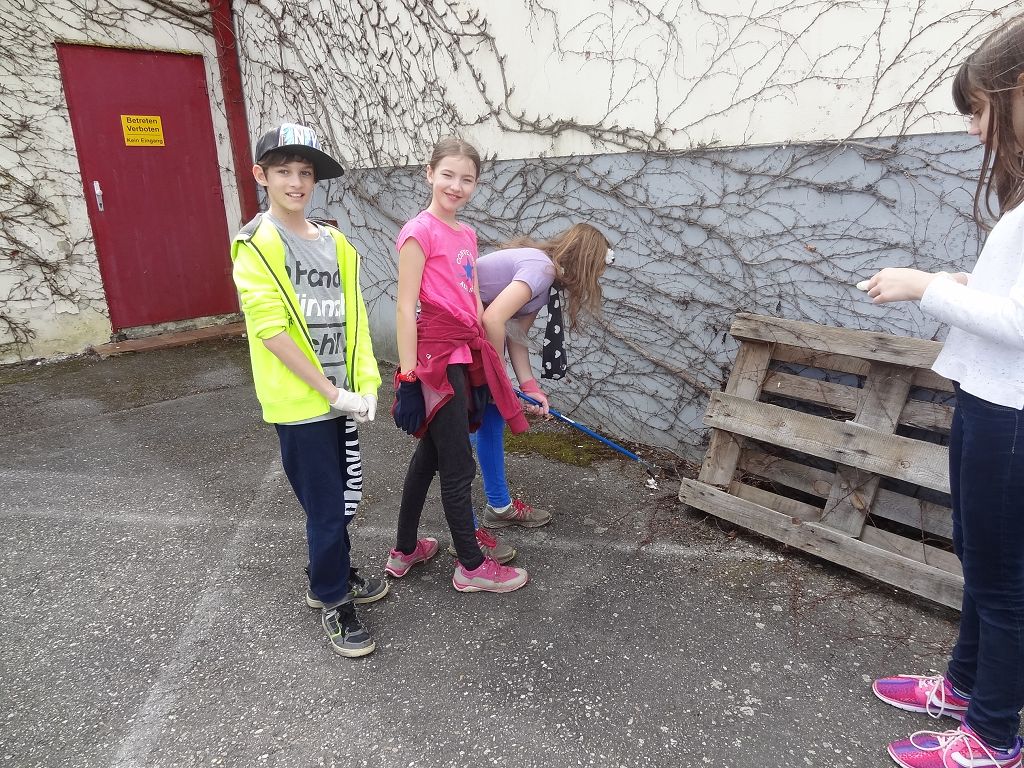 Die Schülerinnen und Schüler der ersten Klassen waren eifrig beim Saubermachen unserer Umgebung dabei.