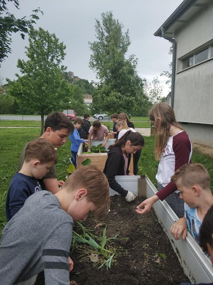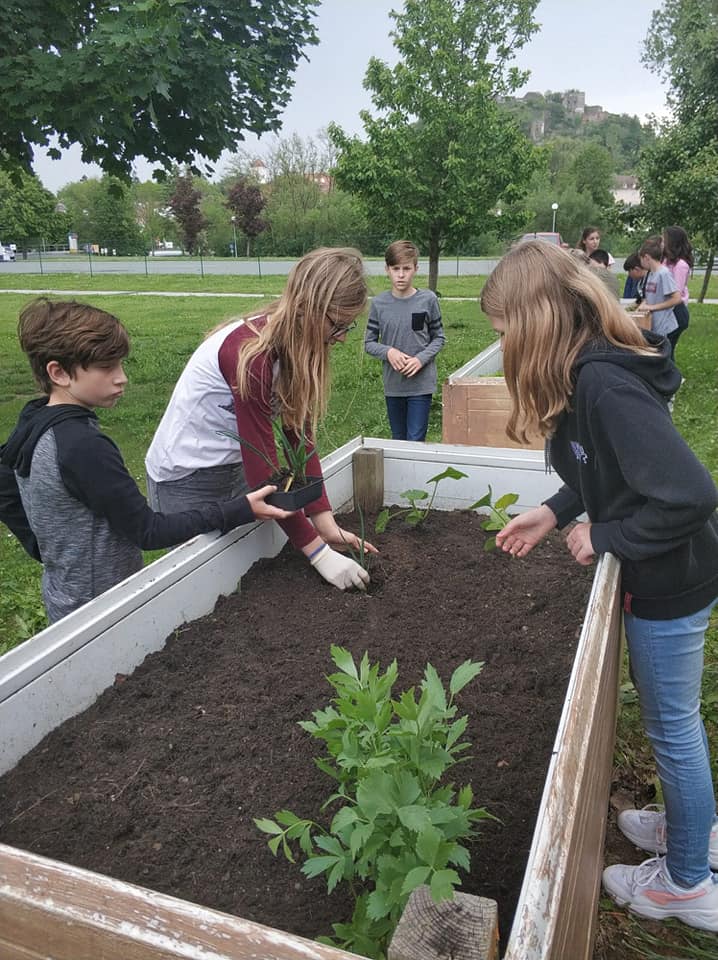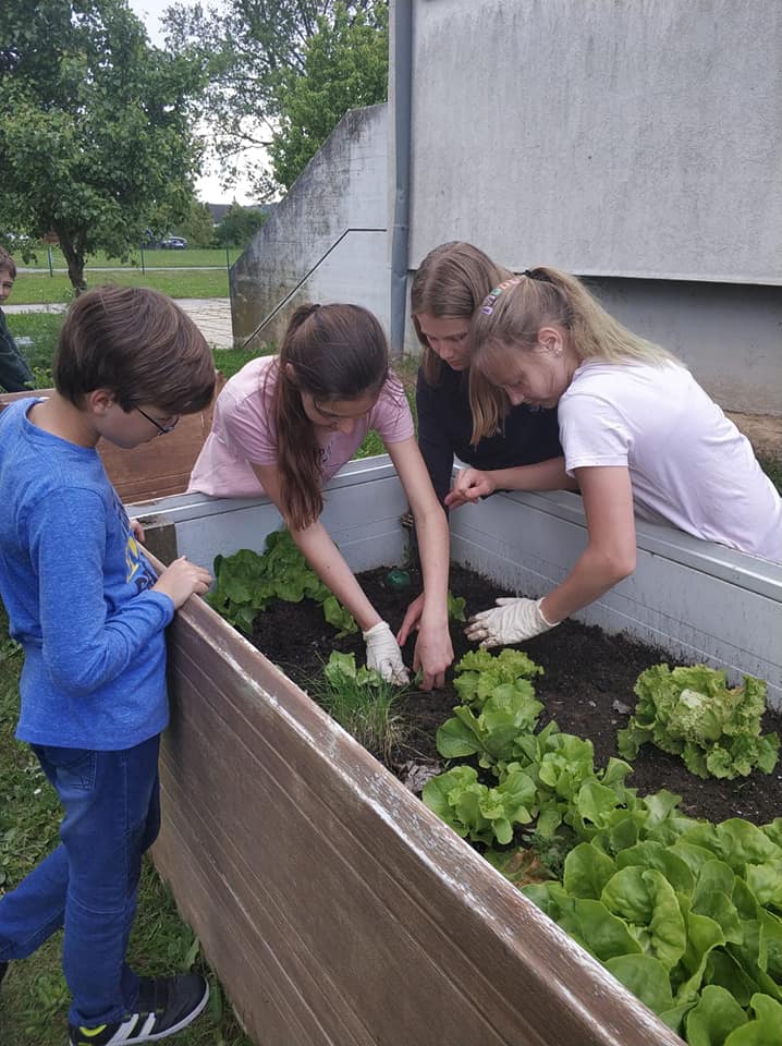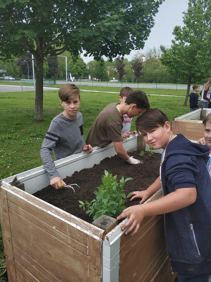 Nach dem Besuch bzw. Einkauf von Gemüsepflanzen bei der Gärtnerei Pomper machten sich die Schülerinnen und Schüler sehr motiviert an die Arbeit, das Hochbeet vorzubereiten und die Pflanzen zu setzen. Alle freuen sich schon auf die Ernte.