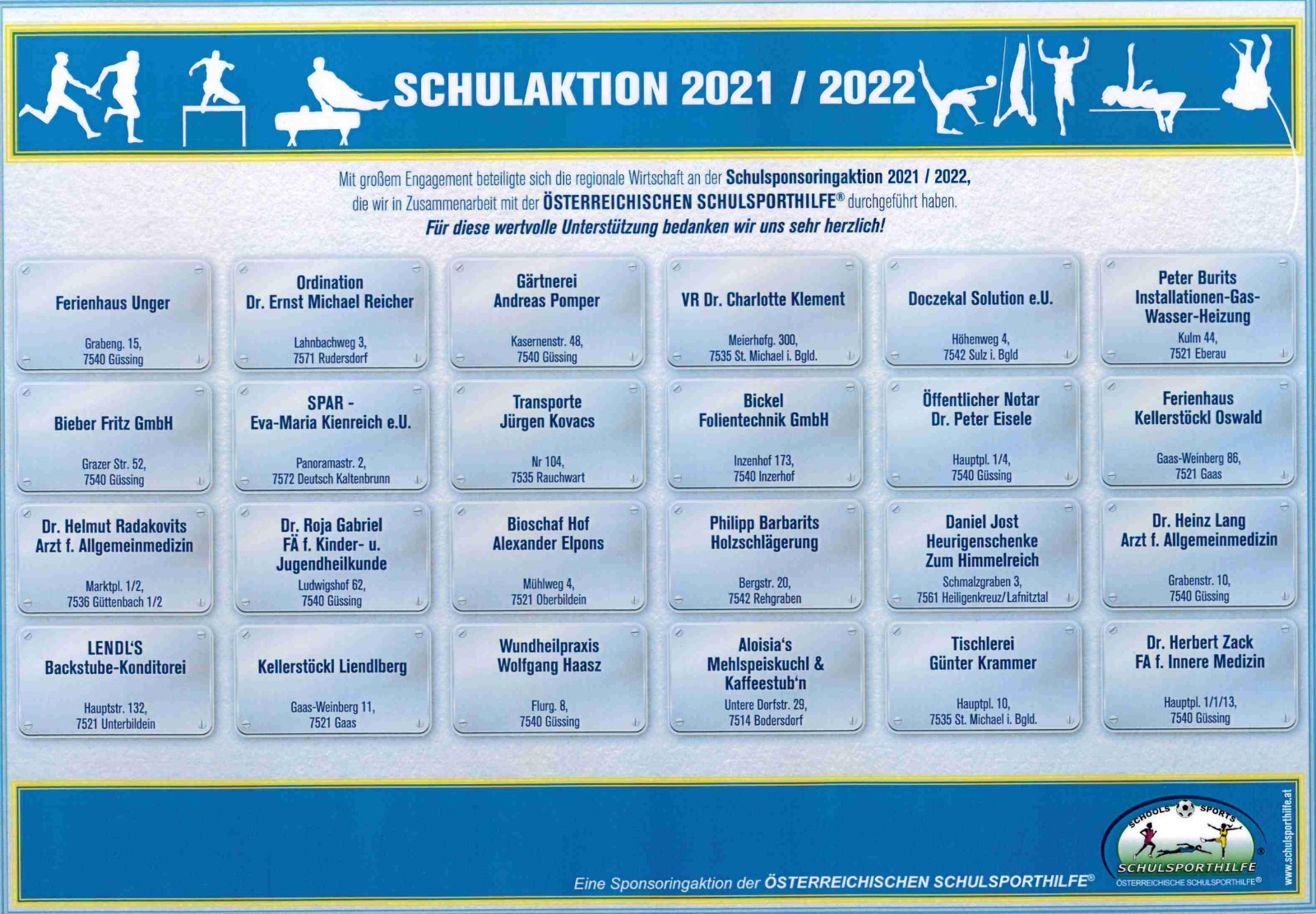 Erstmals wurde heuer eine Sponsoring-Aktion der ÖSTERREICHISCHEN SCHULSPORTHILFE für die Sport-Mittelschule Güssing durchgeführt.