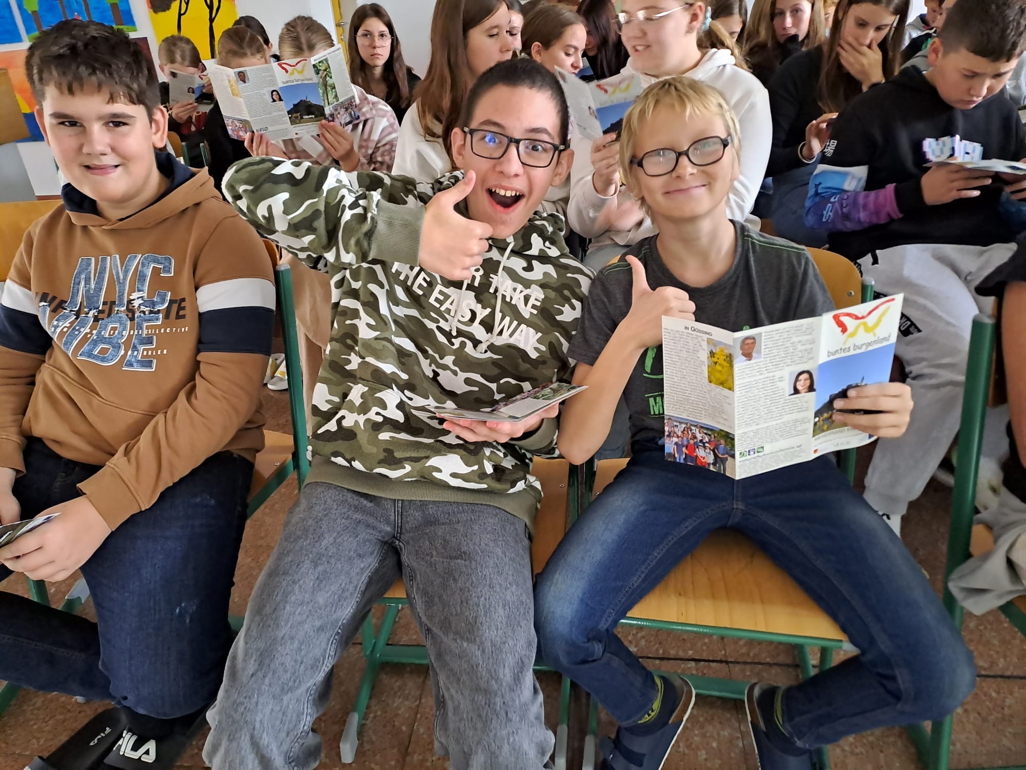 Am 24. Oktober 2023 fand die Abschlussveranstaltung aller 3. Klassen zum Projekt mit der Organisation „Buntes Burgenland“ statt und es kann als gelungen bezeichnet werden. Das Ziel, nämlich 100 verschiedene Tier- und Pflanzenarten bei drei Exkursionen ins Ramsar-Gebiet zu finden, konnte mit 14 weiteren übertroffen werden. Als Forscher/innen mussten die Kinder bestimmen, dokumentieren und fotografieren. Außerdem wurde ein Folder für den Bezirk Güssing mit Fotos von den Ausflügen und ein Film erstellt.