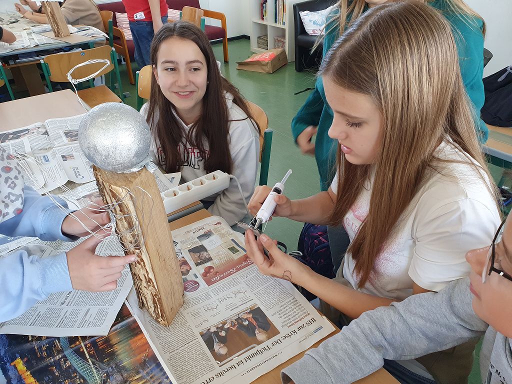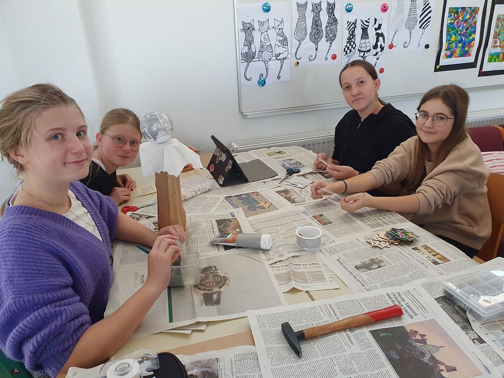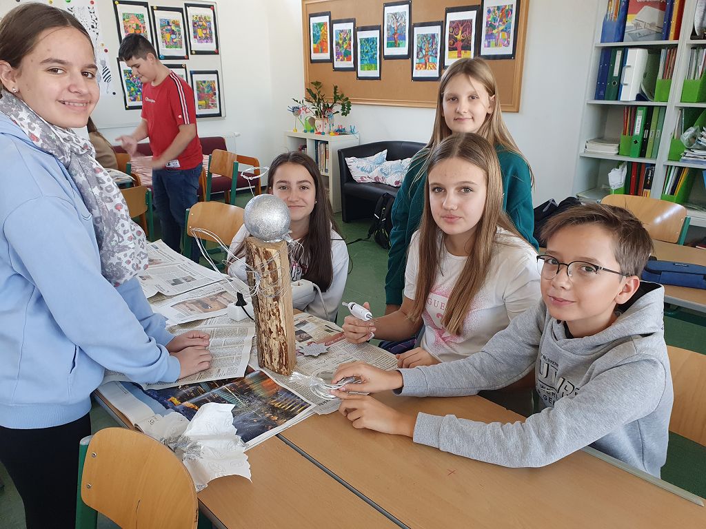 Die Kreativgruppe der 3. Klassen ist schon in Weihnachtsstimmung. Adventkränze, Christbaumschmuck, Deko, Bilder – alles selbst gemacht – schmücken unser Schulhaus.