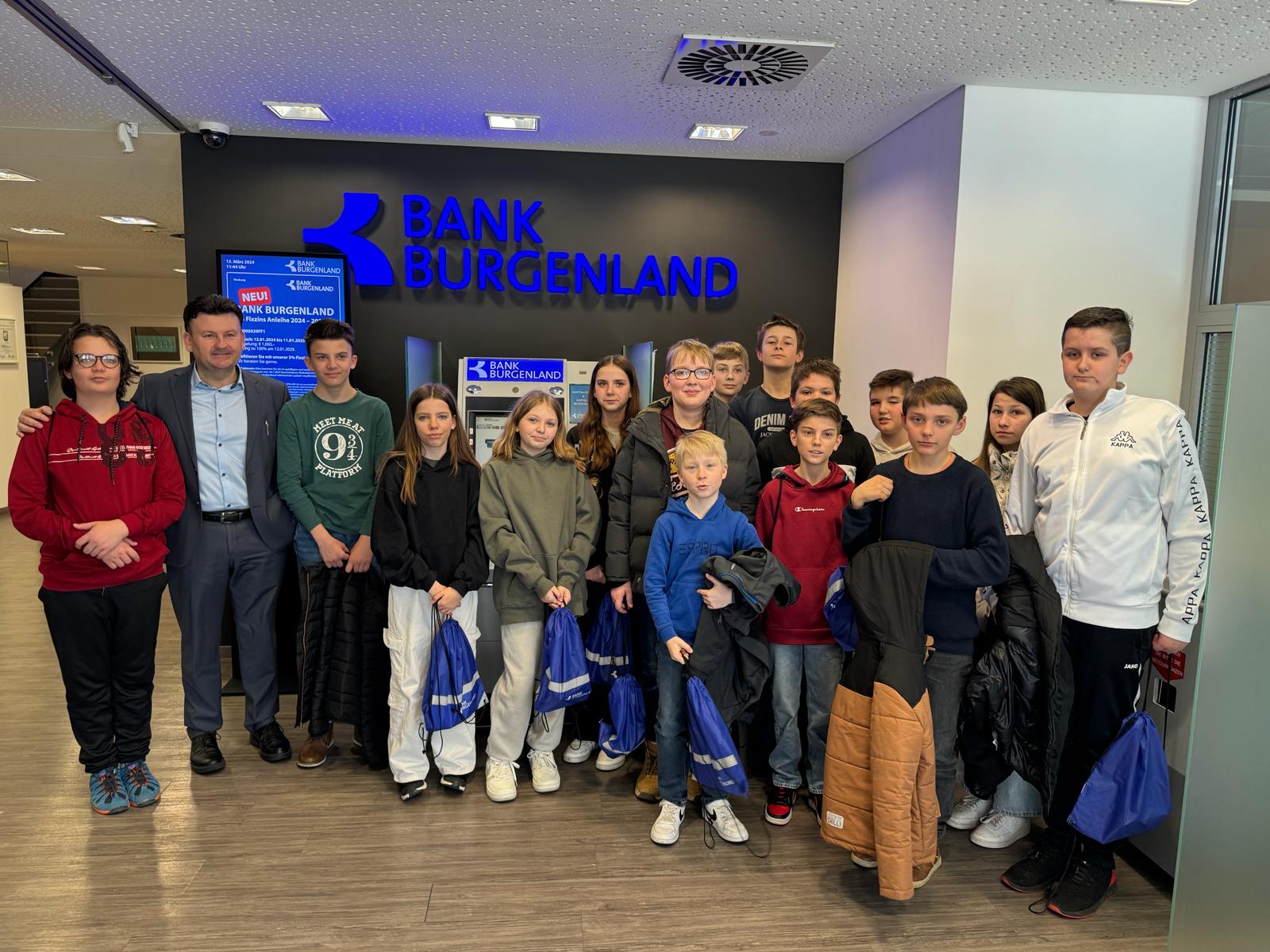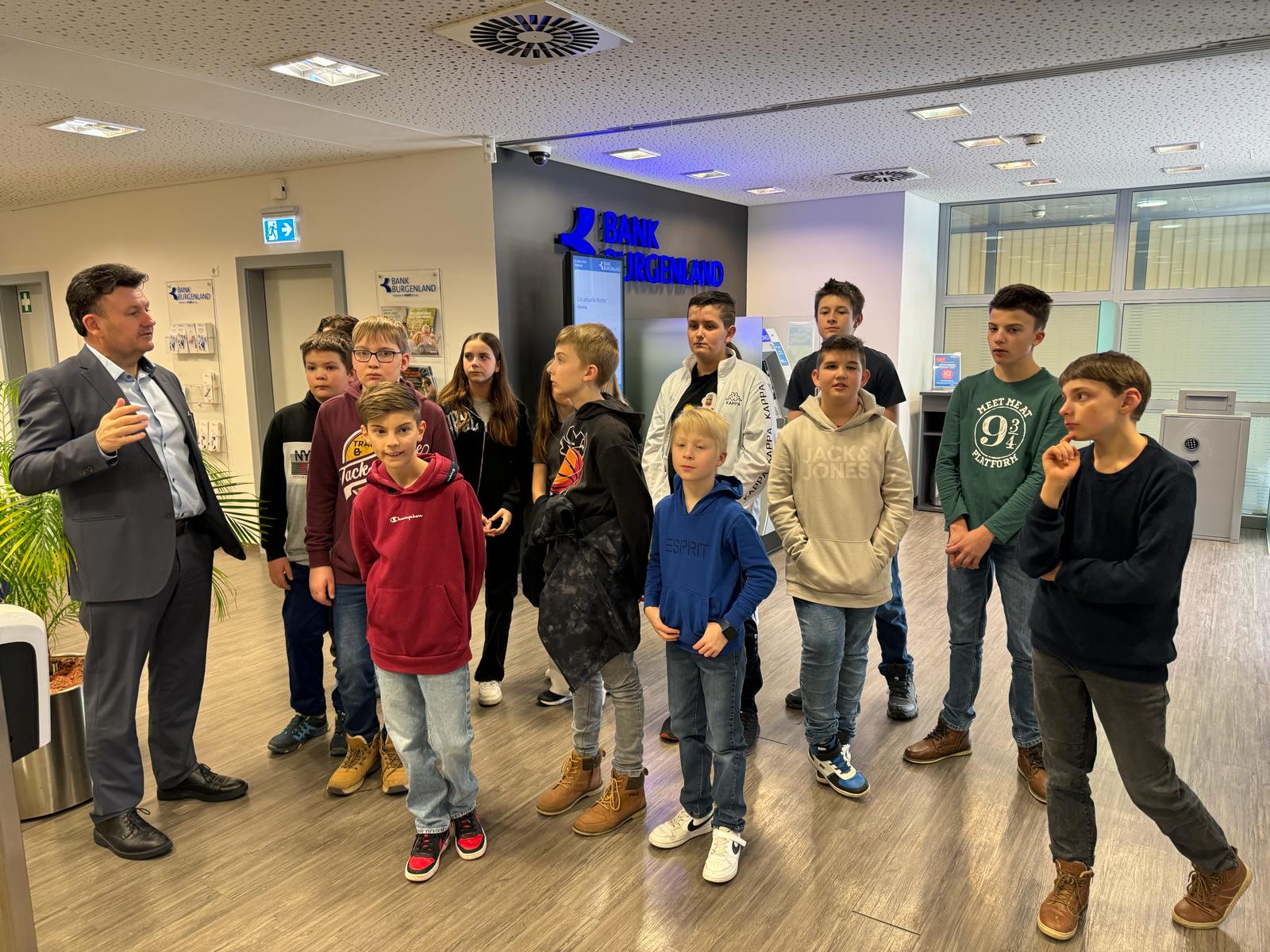 Herr Direktor Tukovics und sein Team luden uns in die Bank Burgenland in Güssing ein. Während unseres Aufenthaltes bekamen die Schüler*innen vielfältige Einblicke in den Alltag und die Arbeitsweise einer Bank. Sie durften unter anderem den Tresorraum, den Sitzungssaal und das Büro des Bankdirektors besichtigen.