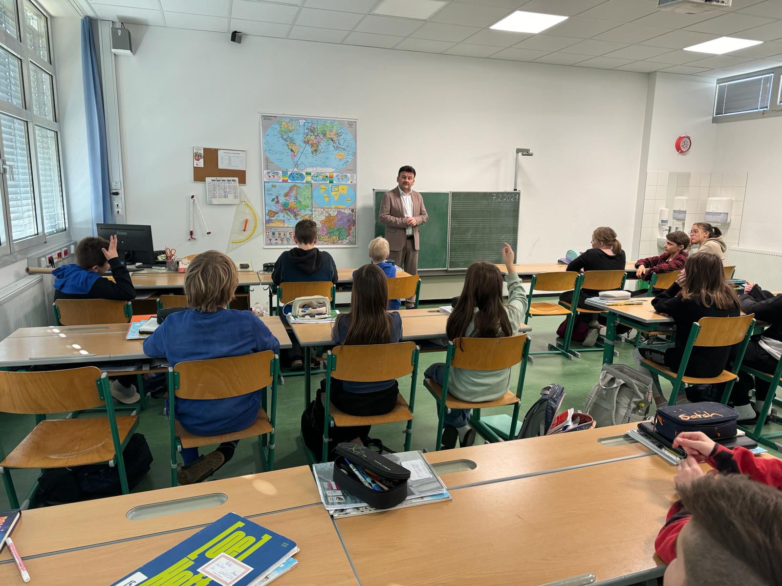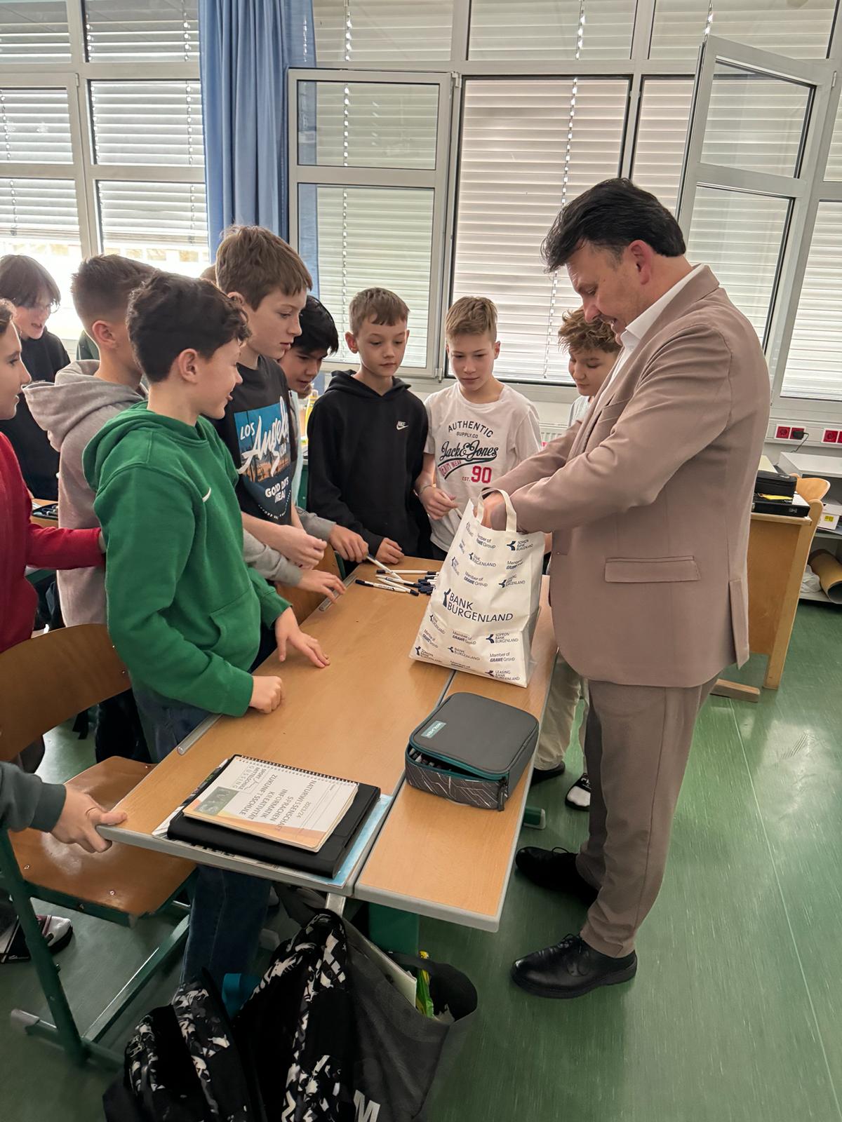 Für einen Vortrag im Rahmen des Themas "Banken und Geld" besuchte der Bankdirektor Herr Tukovics Gerhard die 2. Klassen. Die Schüler*innen erhielten Informationen über den Aufbau einer Bank, die verschiedenen Sparmöglichkeiten und Zahlungsformen.