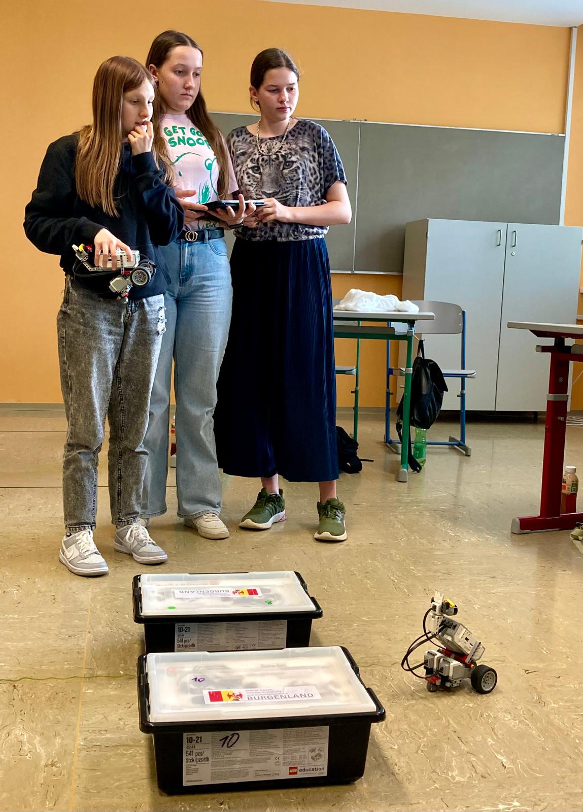 Am 7.5.2024 fand die Regionalausscheidung des ROBERTA-Cups statt. Teilgenommen haben seitens der SMS Güssing Sophie und Julia Potzmann sowie Jana Nierer. Die Mädchengruppe hatte sich bereits im Rahmen des schulinternen Wettkampfs für die Regionalausscheidung qualifiziert. Auch heute galt es wieder, den Lego Mindstorms Roboter „Roberta“ im Team zu programmieren, um die verschiedenen Leistungsaufgaben erfolgreich zu meistern.