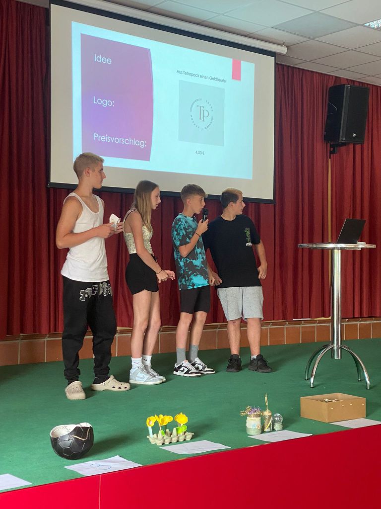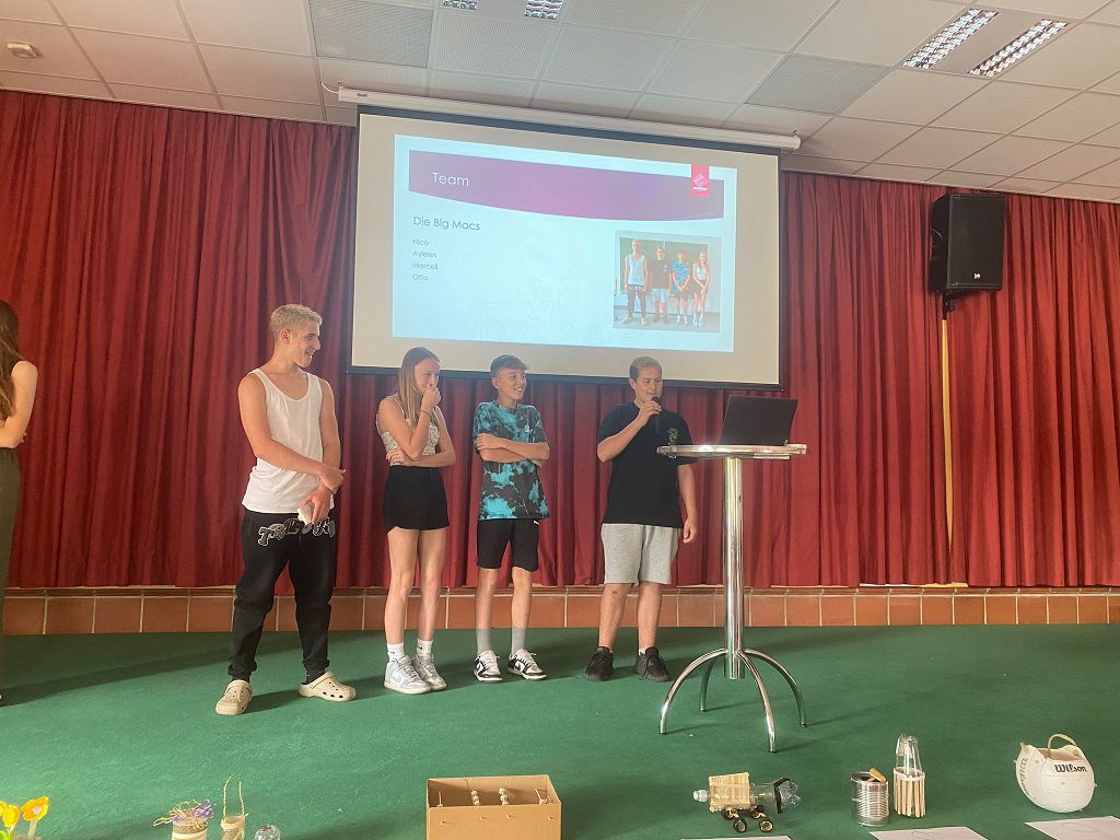 Am 20.06.2024 kreierten unsere Schüler*innen in Kleingruppen aus Müll und alten Gegenständen ein neues Produkt. Die Produktideen wurden gebastelt und in kurzen Präsentationen vorgestellt.