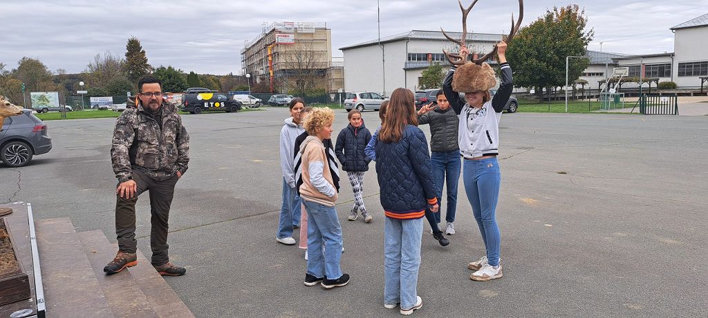Unter der Leitung der Waldpädagogen Alexandra Laky und Michael Mayer konnten die Kinder der 2. Klassen am 14.10.2024 einen spannenden Workshop erleben. Im Anhänger der "Werkstatt Natur" gab es viel zu erklären und anzugreifen. Besonders begeistert waren die Kinder von der Möglichkeit, mit dem Fernglas die Umgebung zu erkunden.