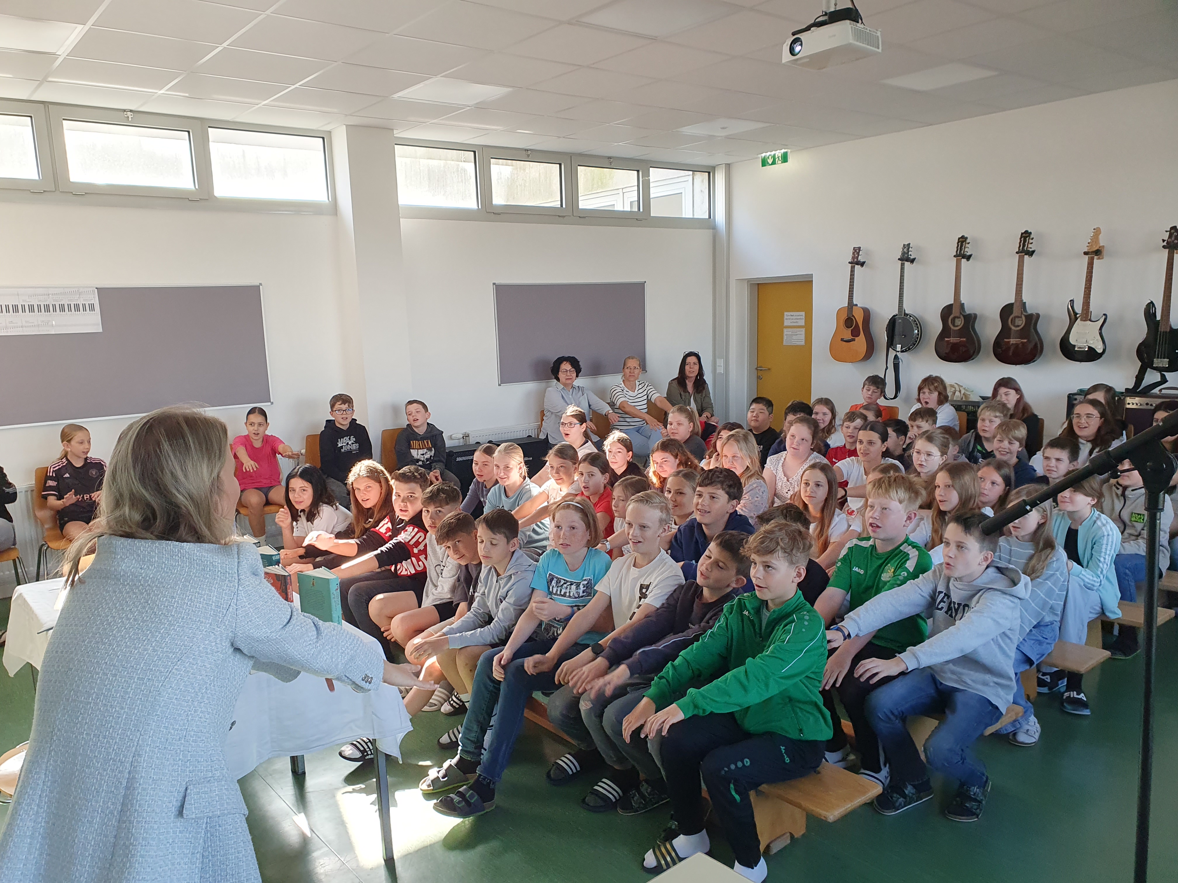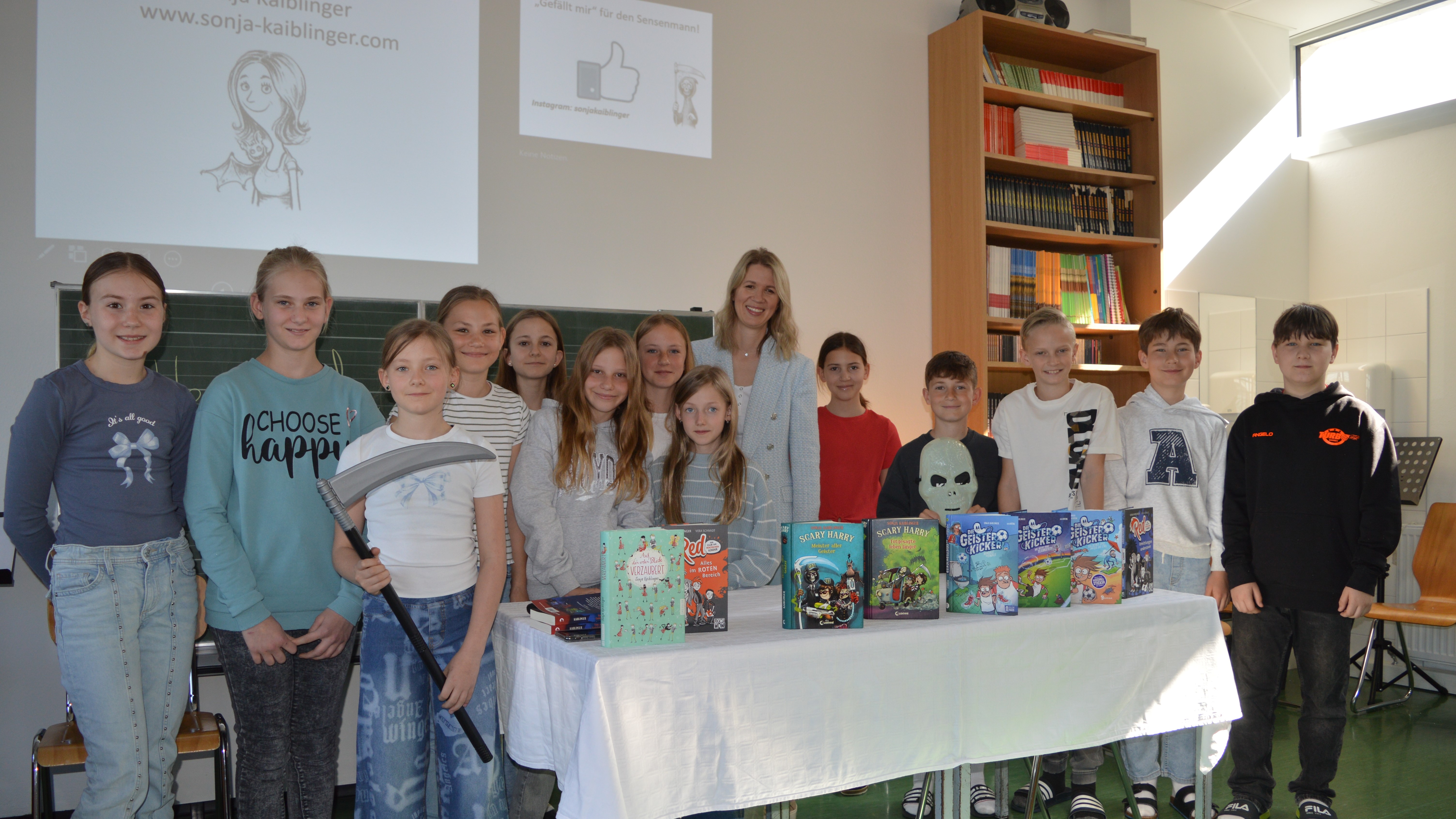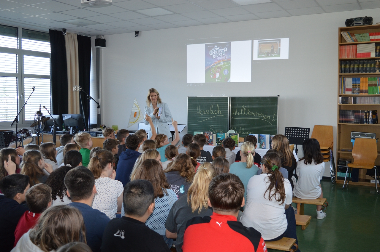 Am 28. April 2025 durften die 1. und 2. Klassen einen besonderen Gast begrüßen: die bekannte Kinder- und Jugendbuchautorin Sonja Kaiblinger. Im Rahmen der Leseförderung las sie den ersten Klassen aus ihrem Buch „Geisterkicker“ und den zweiten Klassen aus der Reihe „Scary Harry“ vor - eine perfekte Mischung aus Humor, Grusel und Abenteuer.