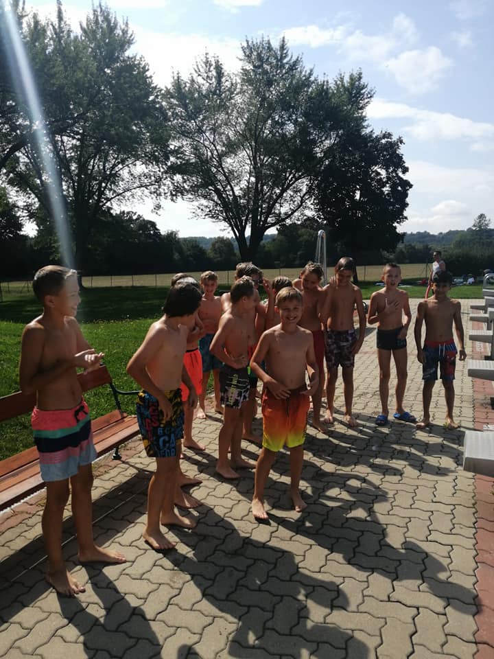 Die Sport umd Gesundheit-Gruppe der 4. Klassen nutzten die letzten warmen Sommertage für Krafttraining, Wasserstaffelspiele und um die letzten Bahnen für heuer zu schwimmen!