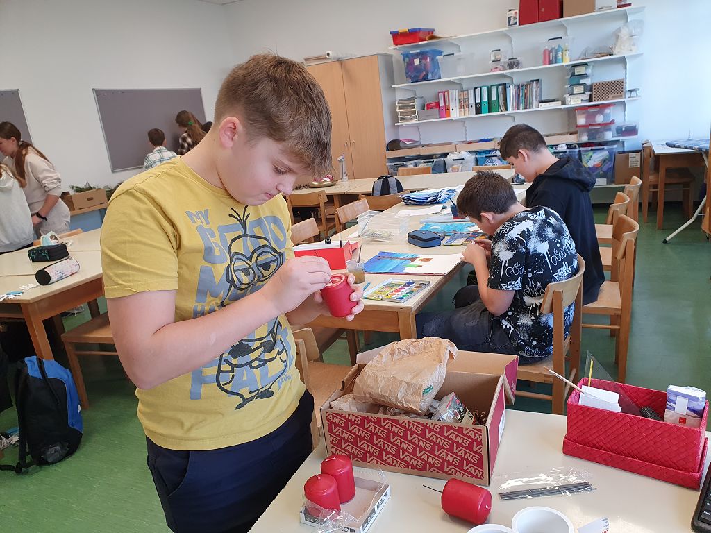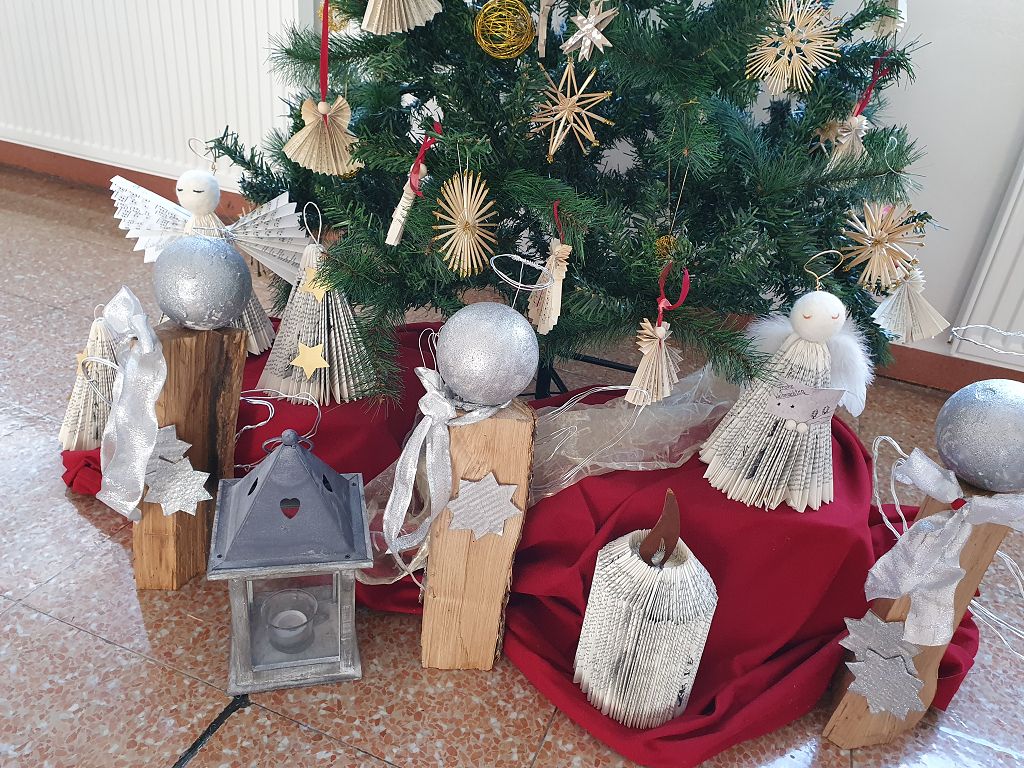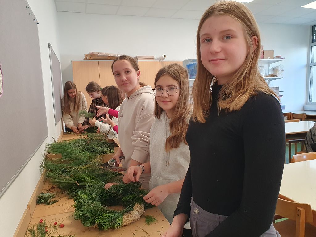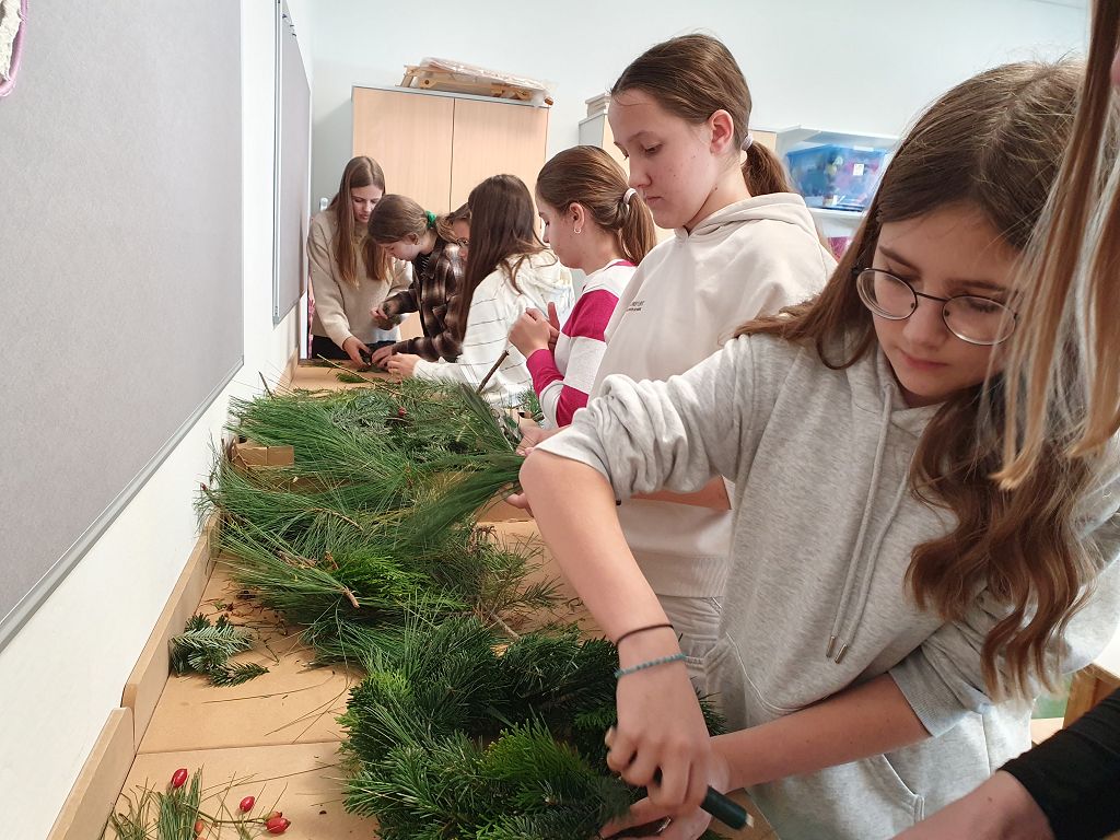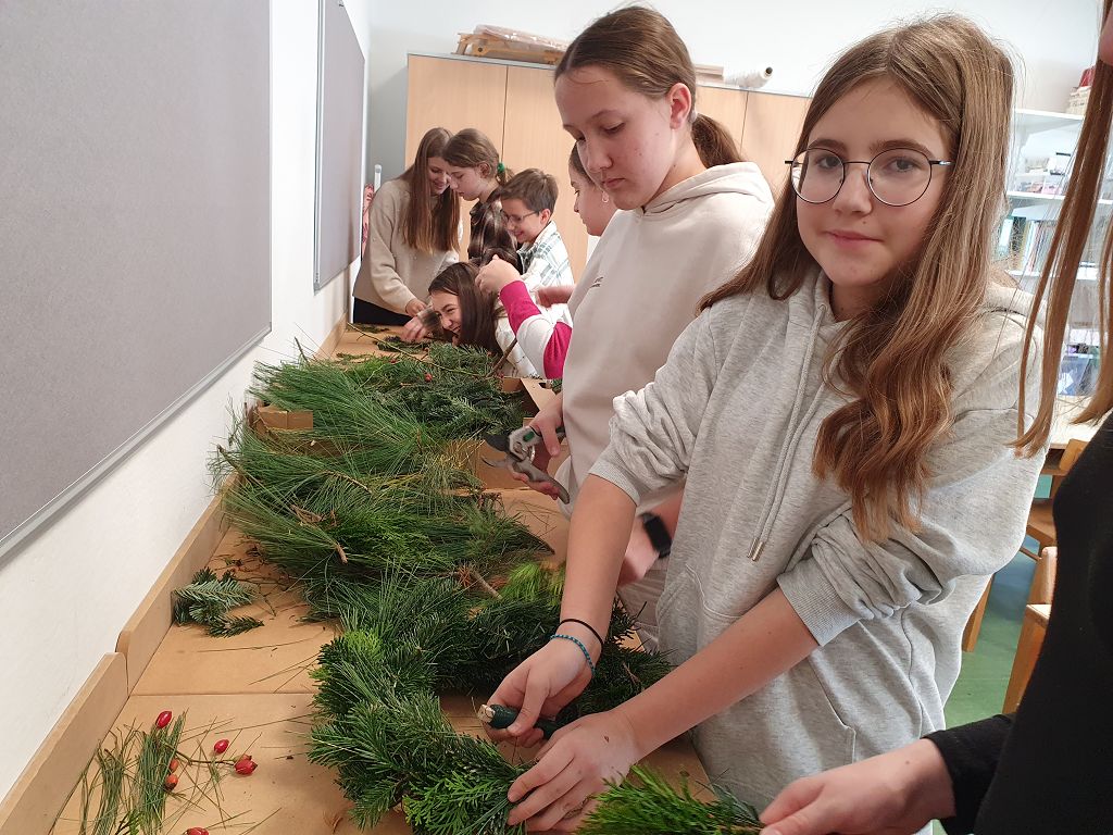 Die Kreativgruppe der 3. Klassen ist schon in Weihnachtsstimmung. Adventkränze, Christbaumschmuck, Deko, Bilder – alles selbst gemacht – schmücken unser Schulhaus.