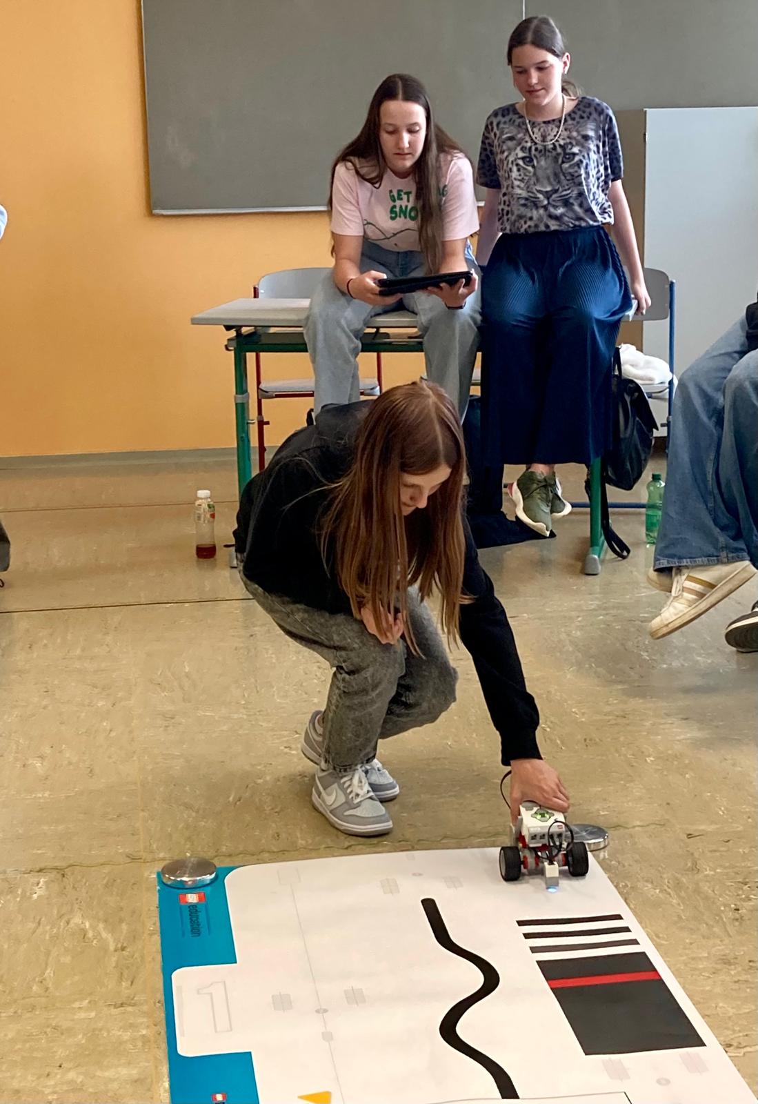 Am 7.5.2024 fand die Regionalausscheidung des ROBERTA-Cups statt. Teilgenommen haben seitens der SMS Güssing Sophie und Julia Potzmann sowie Jana Nierer. Die Mädchengruppe hatte sich bereits im Rahmen des schulinternen Wettkampfs für die Regionalausscheidung qualifiziert. Auch heute galt es wieder, den Lego Mindstorms Roboter „Roberta“ im Team zu programmieren, um die verschiedenen Leistungsaufgaben erfolgreich zu meistern.