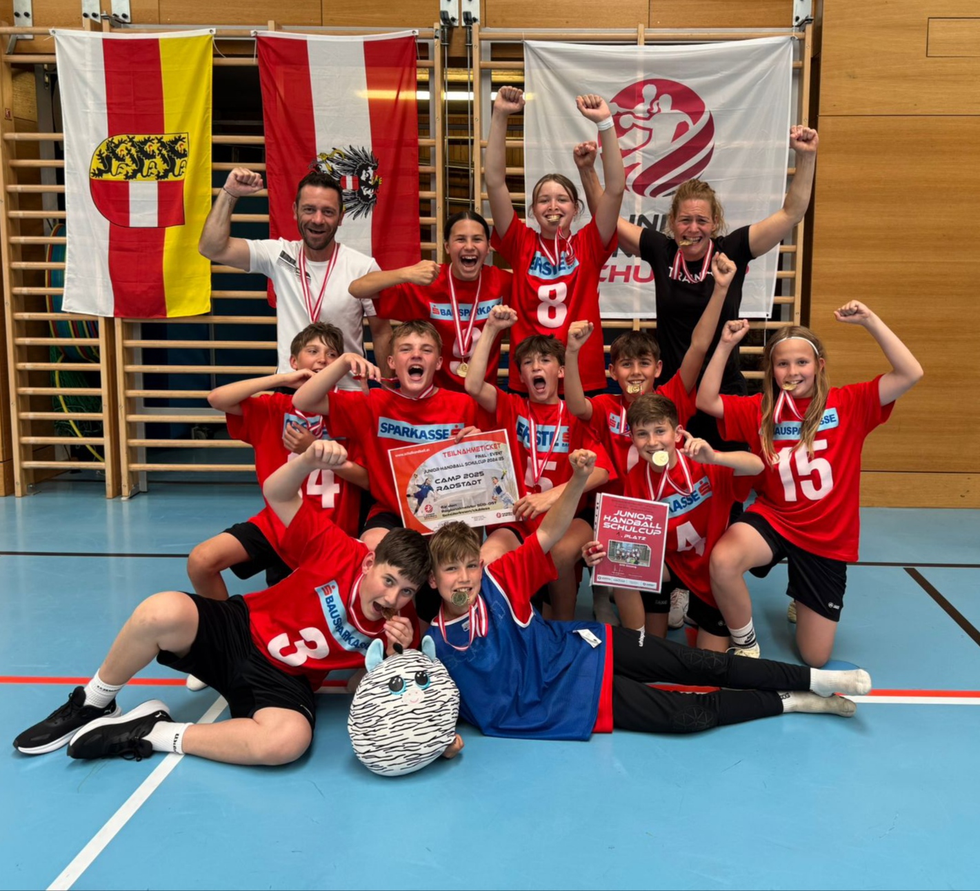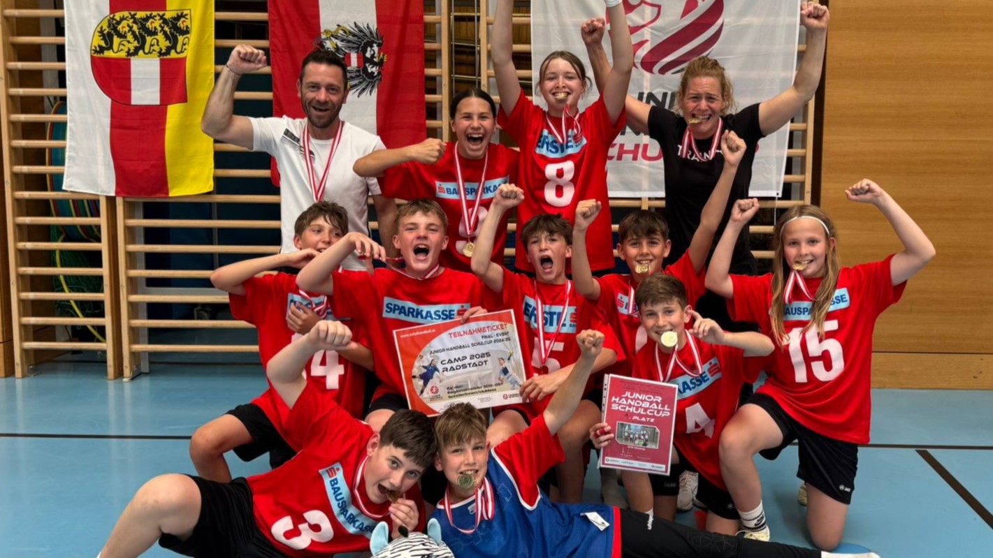 Auch im Handball ist die SMS Güssing im Vormarsch! Als Landesmeister beim Junior-Schulcup in Oberwart mit dem 14:9-Finalerfolg gegen die MS Frauenkirchen und dank Siegen gegen Kärnten und Steiermark bei den Regionalmeisterschaften Süd-Ost in Klagenfurt ging es zur Bundesmeisterschaft in Radstadt. Dort schrammten die Kids denkbar knapp am Stockerl vorbei. Beim allerersten Antreten gab es mit zwei Siegen, einem Remis und zwei Niederlagen den starken vierten Platz.